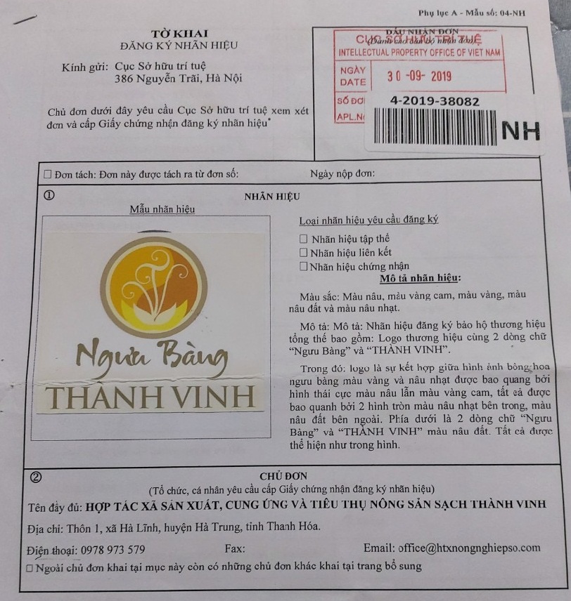 Bản quyền nhãn hiệu cây Ngưu Bàng Thành Vinh
