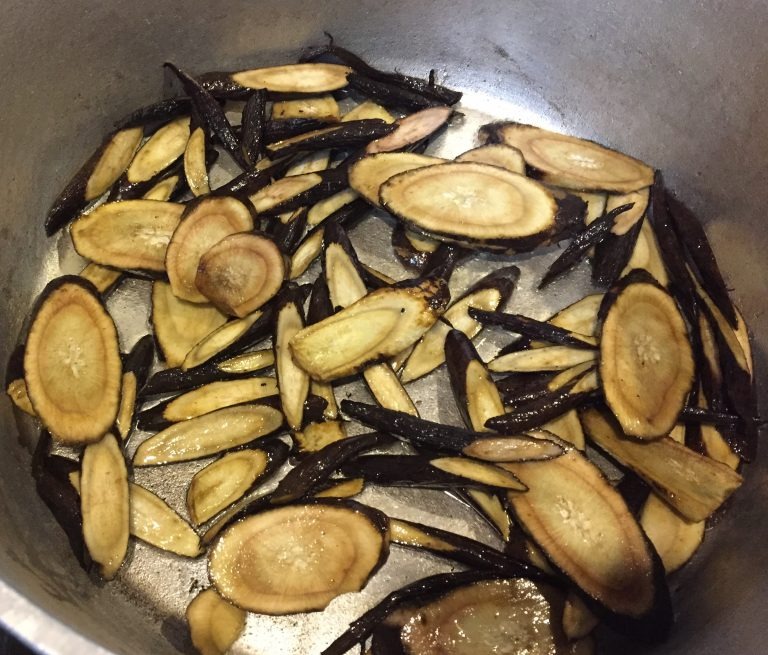 – Ngưu bàng xắt lát kho cùng củ sen, cà rốt cũng rất ngon. (Để ngưu bàng mềm hơn bạn có thể hấp ngưu bàng trước). Bạn sử dụng tương Tamari để nấu và đừng quên cho vào chút gừng để thơm hơn ạ.