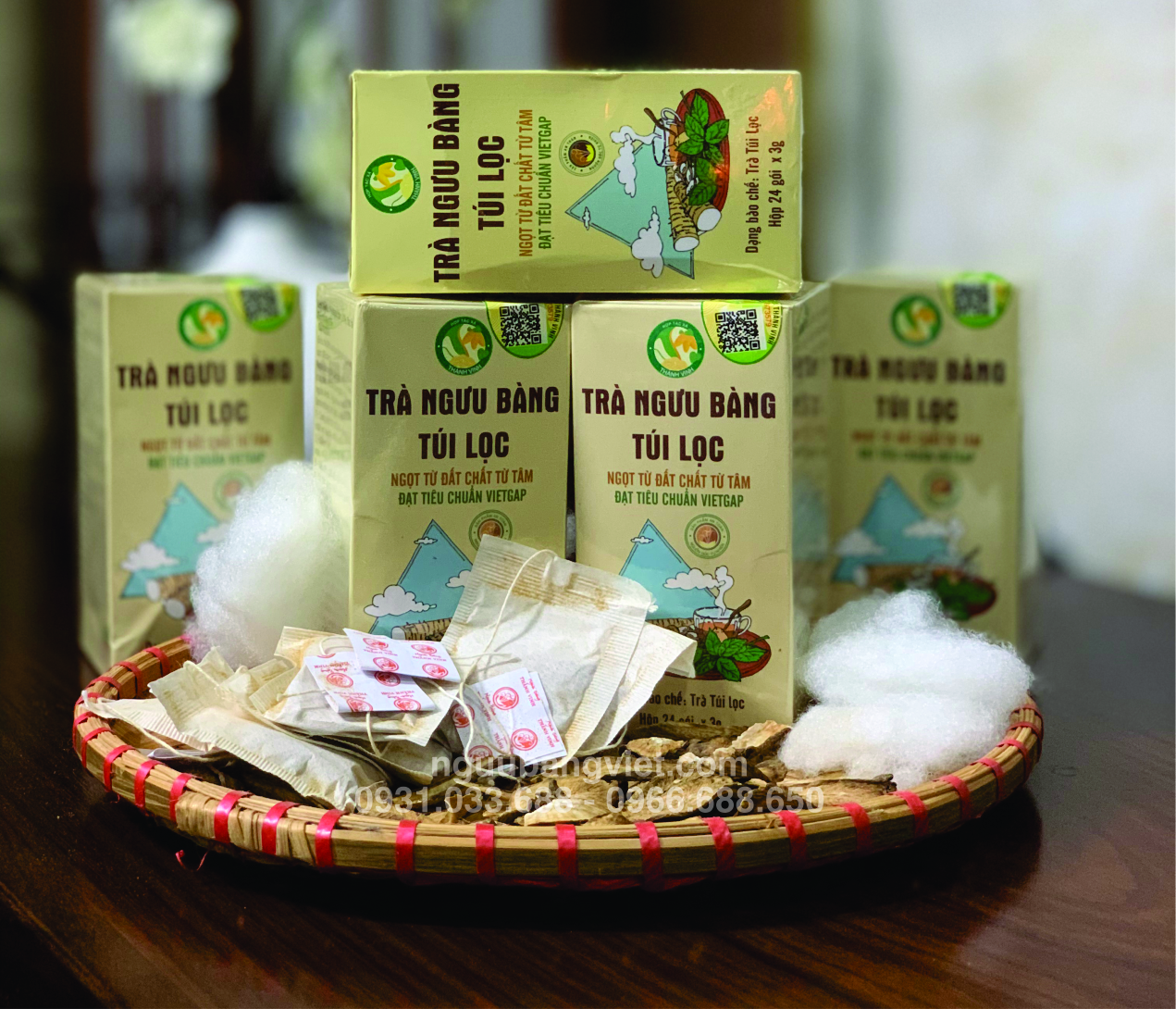 - Trà túi lọc tiện dụng được sản xuất theo công thức độc đáo, đảm bảo tận dụng hết tác dụng của ngưu bàng; cả về hương lẫn vị.